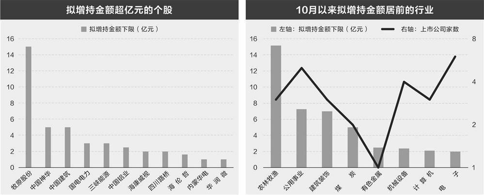 10月以来,农林牧渔、公用事业行业分别有3家和5家上市公司拟增持,拟增持下限金额分别为15.15亿元和7.25亿元,远超其他行业。