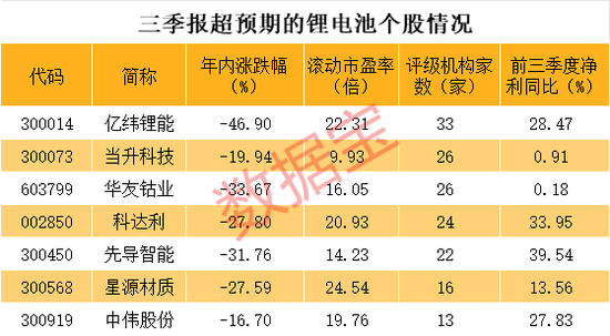 数据宝统计,锂电池板块中,合计有6股近期的研报关键词出现超预期。从净利增速来看,科达利、先导智能前三季净利同比增长均超30%。