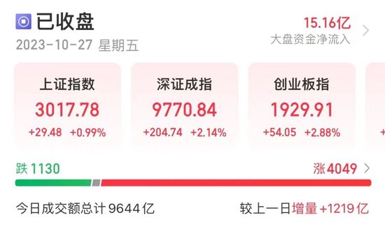 今日A股集体大幅反弹,上证指数连涨4天后站上3000点大关,深证成指涨超2%,创业板指数在新能源、医药大反弹的带领下飙涨2.88%。行业板块方面,医药生物大涨超4%,电力设备涨超3%,纺织服饰、农林牧渔等均涨超2%。