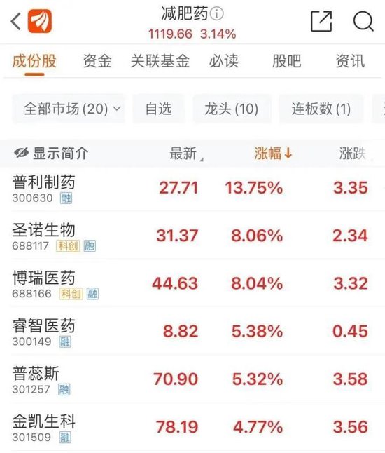 今日,CRO概念、创新药、减肥药等细分板块纷纷强势拉升。个股方面,誉衡药业连续两日封板;普利制药在上周五20%涨停的基础上,今日再度大涨超13%。