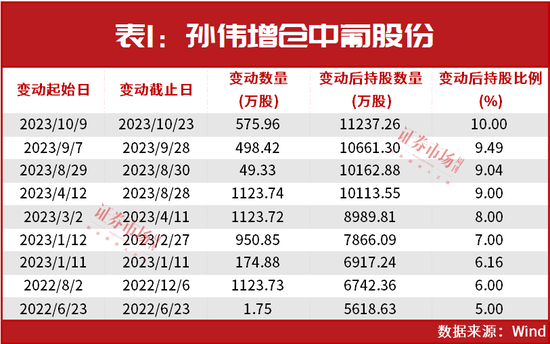 如据中葡股份于8月29日披露的信息称,孙伟于2023年4月12日至8月28日期间增持公司股份1123.74万股,占公司总股本的1%。该次变动后,孙伟持有中葡股份占比达到了9%。另外,在2022年8月~2023年4月期间,孙伟曾连续3次增持中葡股份股份达1%(见表1)。