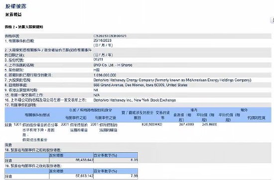 10月31日消息,港交所文件显示,伯克希尔·哈撒韦近日将其对比亚迪H股的持股比例从8.05%降至7.98%。