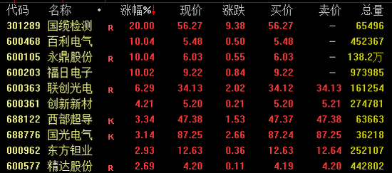 超导概念盘中强势拉升,截至收盘,国缆检测、百利电气、永鼎股份、福日电子等涨停,联创光电涨超6%。