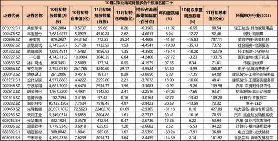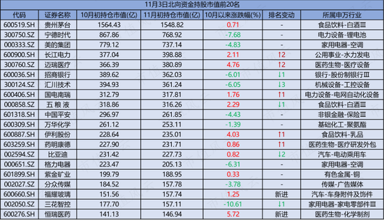 10月以来,北向持仓市值排名前二十的个股总市值在持续缩水,截至11月3日,达7415亿,占其持股总市值的35.6%。期间这些个股表现不佳,平均下跌2.64%。