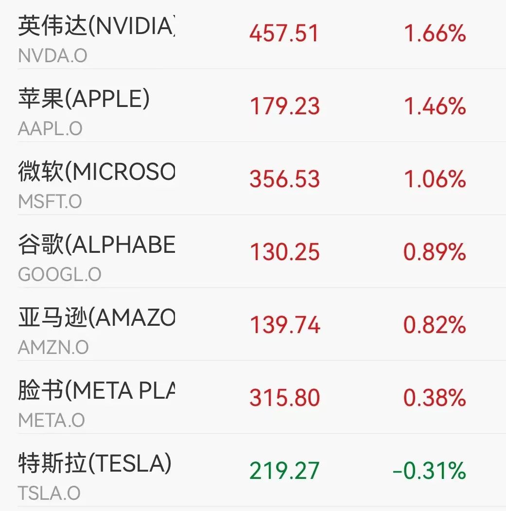 OpenAI开发者大会提振科技股,科技股集体上涨,苹果涨1.46%,亚马逊涨0.82%,奈飞涨0.55%,谷歌涨0.89%,脸书涨0.38%,微软涨1.06%。仅特斯拉微跌。
