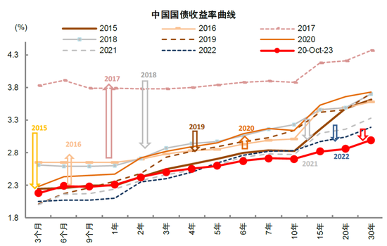 2024年国内宏观流动性或继续宽松,海外流动性有望迎来拐点。2023年初至今十年期国债利率自2.9%左右震荡下行至2.7%(截至10月20日),在美联储紧缩和中美利差影响下,相比于经济面临的压力,货币政策宽松力度受到一定掣肘。2024年结合中国增长预期及外部环境,我们预计国内货币政策仍有宽松空间。