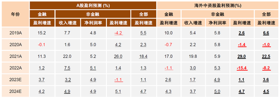 图表7:我们测算2024年全A/非金融盈利增速分别为4.7%/5.1%