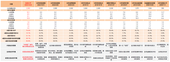 图表10:当前A股估值水平与历次市场阶段性底部时期对比