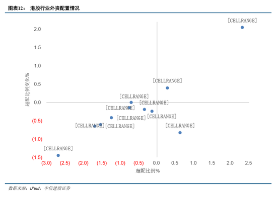 在港股的核心资产中,我们选取了市值排名前三十的个股,计算其在海外流动性收紧区间中的国际中介机构持股占比变化。我们发现,以中国电信、香港交易所以及中国石油化工股份为代表的一批电讯业、金融业和能源业公司外资减持比例最高,后续修复弹性也更大。而以京东、百度为代表的科技咨询业公司,即使在海外流动性紧缩的情况下,外资配置比例不降反增,也反映出外资对其发展前景的看好。