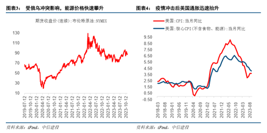 自2021年3月开始,在疫情冲击逐步缓解,消费较快修复背景下,美国CPI同比涨幅持续上升,并在2022年6月达到9.1%的峰值。2022年全年美国CPI同比涨幅达到 6.2%,较上年大幅加快 2.6个百分点,创下近四十年来新高。悉数本轮美国面临的高通胀问题,我们认为主要有以下四点原因:1. 政策层面,疫情期间美联储进行大量QE为市场注入流动性,引发M2高增,同时推出2万亿美元的财政刺激计划支持实体经济发展。2. 俄乌冲突爆发冲击了供应链,引发全球能源危机、导致能源和粮食价格快速上涨,对通胀起到推波助澜作用。3. 疫情之后劳动力市场供不应求,导致薪资快速上涨。4. 疫情之后房地产市场需求大增,租金价格快速上涨。
