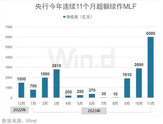 11月央行开展14500亿1年期中期借贷便利(MLF)操作。Wind数据显示,本月有8500亿元MLF到期,实现净投放6000亿元。这也是央行今年连续11个月MLF均增量续做,并且于11月份净投放再创年内新高。可见央行持续为市场提供中期流动性。