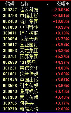 今天上午,传媒板块大涨,佳云科技中信出版中国科传等个股涨停。