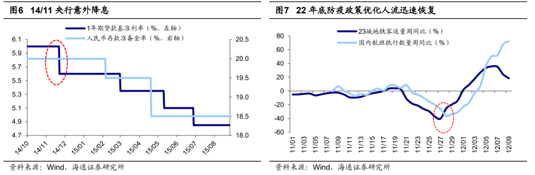 年底结构收敛还需要一定的政策或事件催化。随着三季报披露完毕,年底2个月市场进入业绩真空期,政策利好和预期改善也是弱势行业完成逆袭的必要条件。我们以几次较为典型的结构收敛年份为例,行情收敛的催化剂都是政策和事件:12年底银行板块大涨的催化剂是12/08以来工业企业利润企稳回升叠加12/12习近平总书记向邓小平铜像敬献花篮等一系列事件推动改革预期升温;14年底银行地产大涨的催化剂是流动性充裕,宏观上14/11央行意外宣布降息,标志货币政策转向宽松,微观上政策鼓励下融资融券业务快速发展;18年通信板块领涨的催化剂是中美关系改善,18/12中美两国领导人会晤,同意停止加征新的关税;22年消费板块逆袭受益于防疫和地产政策优化,出行人数迅速恢复。