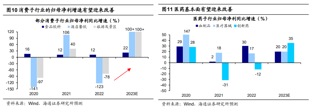 此外,低估低配的医药也有望迎来再平衡。目前医药生物板块的估值和基金配置仍处于较低水平,其中医药PE处13年以来19.0%分位,23Q3基金对医药超配比例处13年以来45%分位。往后看,医疗反腐对行业的影响逐渐过去,并且中期来看我国人口老龄化正在加深,未来医疗需求将持续增加,市场对医药行业基本面预期有望扭转,未来一段时间医药的估值及公募基金等机构的持仓有望趋于均衡,前期跌幅较明显的医药生物板块有望受益,结合行业分析师预测,医药子领域中创新药/医疗器械/血制品23年归母净利有望达到35%/20%/20%。