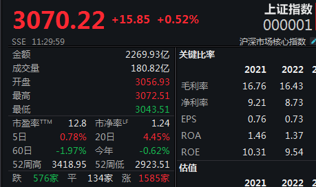 周末宏观消息面略显平静,大盘微幅高开后下探回升,午前权重回升带动指数层面快速走高,截止上午收盘,上证指数涨0.52%报3070.22点,深证成指涨0.59%,创业板指涨0.49%,A股半日成交5804.3亿元,环比明显增加;北向资金则在早盘一度减仓近40亿的情况下,上午净买入近12亿元。