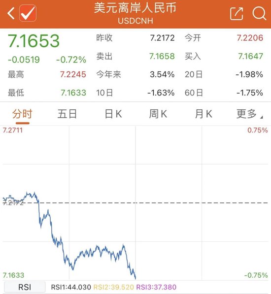 11月20日晚间,在岸、离岸人民币对美元汇率涨幅持续扩大,双双升破7.17关口。