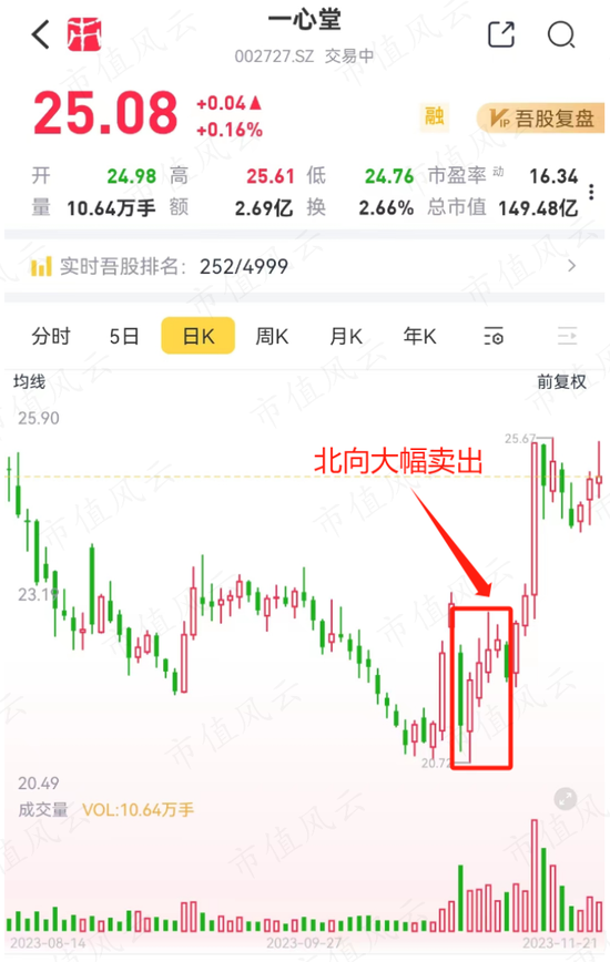 一心堂在10月31日至11月7日被北向资金累计净卖出1668.7万股,持股占比下降至4.2%。结果,股价不仅没跌,反而在随后3天大涨16.2%。