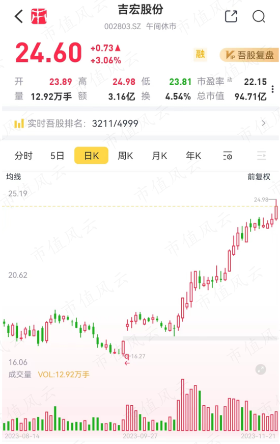 吉宏股份受益于抖音、华为在海外的推广,Q3净利润大幅增长57%,北向资金大幅加仓至3.7%,股价区间大幅增长超50%。