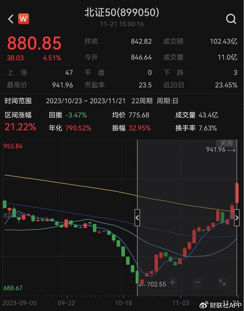 罗马不是一日建成的,北交所的上涨也不是一天启动的。自10月底以来,截至11月21日,16个交易日北证50指数涨幅达到21.22%。