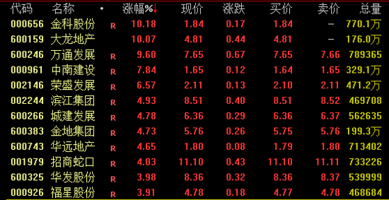 地产板块盘中走高,截至收盘,金科股份、大龙地产涨停,万通发展逼近涨停,荣盛发展涨超6%,金地集团涨近5%。值得注意的是,大龙地产已连续4个交易日涨停。