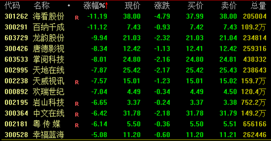 短剧游戏概念今日大幅回落,截至收盘,海看股份、百纳千成跌超11%,龙韵股份逼近跌停,唐德影视、掌阅科技跌逾8%,但引力传媒逆市涨停斩获6连板。