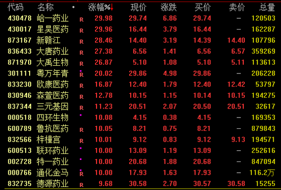 抗流感概念今日再度活跃,截至收盘,粤万年青“20cm”涨停,森萱医药涨近13%,四环生物、鲁抗医药、联环药业、特一药业、通化金马等涨停,以岭药业涨超8%。值得注意的是,四环生物已连续3日涨停。