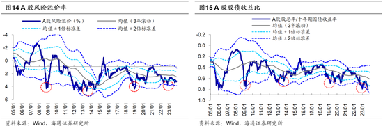 当前A股估值已处在底部,海内外多重积极因素有望催化岁末年初行情继续展开。当前A股估值、情绪等指标依然处于历史低位。从估值来看,A股PE/PB估值水平与历史大底时已经较为接近。今年10月低点(2023/10/23,下同)时全部A股PE(TTM,下同)为16.3倍、处05年以来从高到低24%分位,全A剔除金融为24.9倍、处35%分位;全部A股PB(LF,下同)为1.47倍、处05年以来从高到低1%分位,全A剔除金融为1.9倍、处11%分位。从大类资产比价指标看,当前市场的风险偏好也已处在历史低位。2023/10/23时A股风险溢价率(1/全部A股PE-10年期国债收益率)为3.4%、处05年以来从高到低18%分位,已经高于05年以来均值+1倍标准差(3年滚动);A股股债收益比(全部A股股息率/10年期国债收益率)为0.84、处05年以来从高到低0%分位,达05年以来均值+2倍标准差(3年滚动)附近。