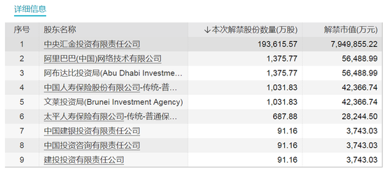 具体来看,下周解禁市值最大的为中金公司,解禁股东为中央汇金投资有限责任公司、阿里巴巴(中国)网络技术有限公司、Abu Dhabi Investment Authority等9个股东,其中中央汇金投资有限责任公司为中金公司第一大股东。
