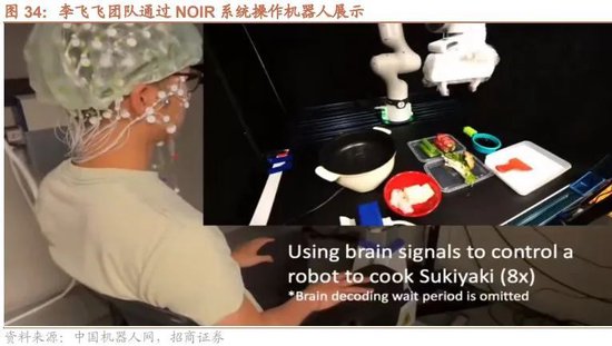斯坦福大学李飞飞团队发布智能系统,以神经信号操作智能机器人。11月4日,斯坦福大学吴家俊和李飞飞领导的一个多学科联合团队研发出了一种通用型的智能BRI系统“NOIR”——神经信号操作智能机器人。这个智能脑机接口系统,能将人类脑电波中的信号转换为机器人可以执行的技能集,使人类通过大脑信号指挥机器人执行日常活动。通过这种接口,人们可以利用脑电图(EEG)向机器人传达他们感兴趣的对象和行为意图。在研究成果中,NOIR技术在20中家庭活动中展示了其功能,包括烹饪寿喜烧、熨烫衣物、刮奶酪、玩井字棋等。随着科技的迅猛发展,机器人技术和脑机接口技术正在以惊人的速度相互融合。