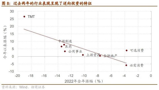以过去两年的行业表现为例,2023年表现和2022的表现基本严格负相关,也就是说,去年表现越好今年表现越差反之亦然。