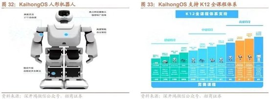 首款基于开源鸿蒙的KaihongOS人形机器人发布,鸿蒙生态想象力再上一层。11月17日,深开鸿与乐聚机器人宣布,推出首款基于开源鸿蒙的KaihongOS人形机器人。据介绍,这款机器人搭载了17个自由度,得益于其内置的高精度传感器和先进的控制系统,可以实现复杂的人形动作和姿态。该产品配置了双摄像头和STM32、RK3568双运算系统,视觉和计算能力强大,可以识别图像、分析数据,甚至进行高级编程。应用场景上,该产品更多聚焦于教育领域,提供K12全课程体系支持,也可对用户血氧、心率等进行侦测。