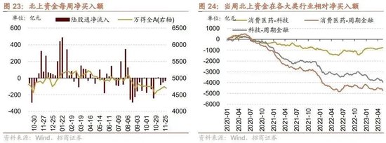 2019~2021年,以北向和公募基金为代表的机构化资金增量资金较为明显,因此2019~2021年机构重仓的个股和板块比较好,2022年市场普跌,并没有显示明显的特征。今年以来,市场风险偏好相对2022年有所提升,资金活跃程度有所提升,但是由于企业盈利削弱以及美债收益率加速上行,北向资金在4月份之后转为净流出,对机构风格的股票产生了不利影响,整体来看,今年股票平均表现与机构持仓成比例反比。