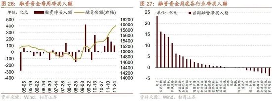 本周(11月20日-11月24日)北向资金净流出31.6亿元,净流出额缩小18.1亿元。行业偏好上,北上资金净买入规模较高的为医药生物、汽车、交通运输等,分别净买入14.3亿元、13.7亿元、8.0亿元;集中卖出电力设备、非银金融、有色金属等,净卖出规模达-23.2亿元、-13.8亿元、-11.4亿元。