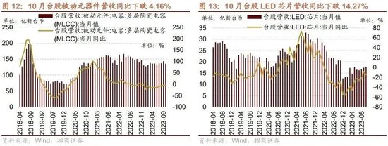 【中观·景气】10月移动通信基站设备产量同比跌幅收窄,包装专用设备产量同比跌幅收窄。10月多层陶瓷电容(MLCC)台股营收同比跌幅收窄,LED芯片台股营收同比跌幅扩大。10月光缆产量三个月滚动同比跌幅收窄。10月移动通信基站设备产量同比跌幅收窄,程控交换机产量同比跌幅扩大。10月包装专用设备产量同比跌幅收窄,金属成形机床产量同比跌幅扩大。