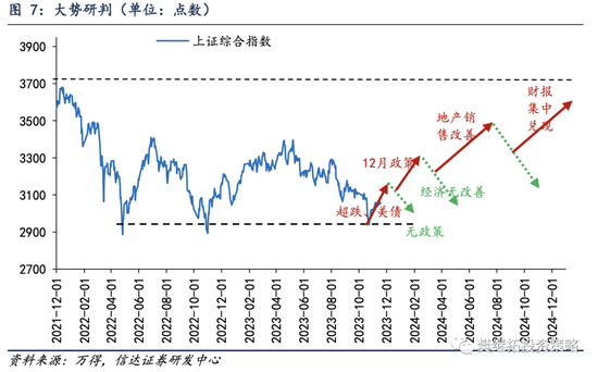 (4)策略观点:反转的力量正在不断累积。展望未来半年,我们认为A股存在三个反转的力量:(1)政策底&超跌修复:6月以来,市场表现最弱的是成长中的TMT,背后核心是股价涨幅过大,但业绩兑现一般。但我们认为由于AI产业趋势尚未被证伪,互联网监管和疫情对计算机和传媒基本面的负面影响基本结束,TMT估值很难跌回原点,季度调整可能已经较为充分,有望逐渐止跌。(2)库存周期反转:库存周期是经济短周期波动中最重要的力量。我们认为,库存周期不会消失,一旦反转会对股市产生半年以上的正面影响。1990-2009年,日本经济在失去的二十年中,在库存周期下降末期到回升初期,日经225指数很容易出现半年以上的反弹。(3)房地产销售企稳改善:我们认为,房地产销售已经跌到了合理需求水平之下,随着政策的变化,2024年存在销售反弹回升的可能性。这三个力量先后发力,将会形成反转的三个阶段。超跌反弹和政策对市场的直接影响大多不会超过一个季度,库存周期对市场的影响最弱的情况下可能只有半年,房地产销售一旦改善,行情级别将会是年度的。