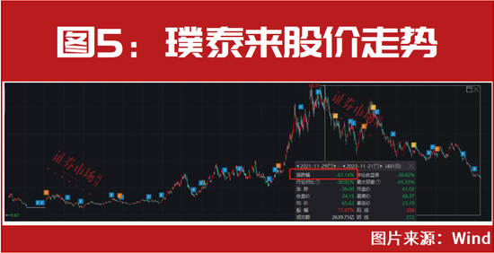 而“低估”同样或是杜昌勇选择布局璞泰来的主要原因之一。Wind显示,自2021年下半年创下68.37元/股的历史高点以来,璞泰来股价至今累计跌幅同样超过60%(见图5)。在投资上,杜昌勇与廖茂林也有相似的策略,如其近期公开表示,“部分前期估值过高的优质公司随着股价的进一步调整,将会纳入我们考虑的范围。”