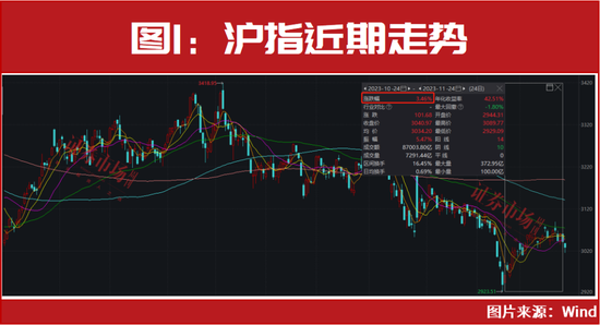 自10月23日创下阶段低点以来,沪指持续震荡向上运行,至今已累计上涨超过3%(见图1)。与此同时,A股市场的成交量也在持续增长。如11月以来,股票成交额维持在8000亿元甚至9000亿元左右,11月21日,更是突破万亿门槛。