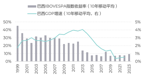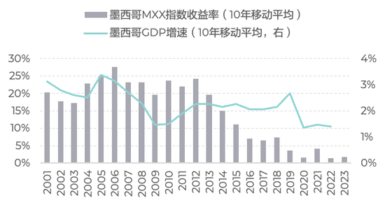 以巴西、墨西哥、韩国为代表,经济增速与股市收益之间表现出了更强的正相关关系。经济增长势头良好的时期,这些国家的股市收益一般都维持在不错的水平。一旦经济增速下降,股市收益也随之大幅下挫。