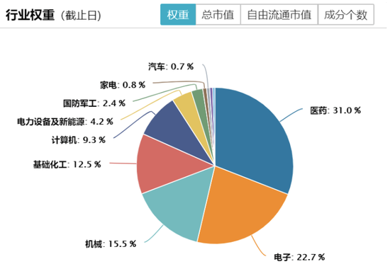 科创100指数从科创板中甄选科创50指数之外市值中等且流动性较好的100只证券作为样本,用来反映科创板市场不同市值规模上市公司证券的整体表现。科创100指数在不同行业上的分布较为均衡,在占比最高的医药、电子板块上的权重维持在30%、20%附近,更有利于规避在单一行业集中度过高带来的高波动等风险。