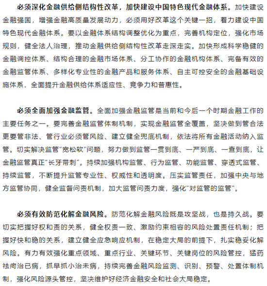 文章最后提到“三个必须”,其中就包括加强金融监管和有效防范化解金融风险。