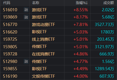 有的游戏ETF,涨幅都冲到8%以上去了。