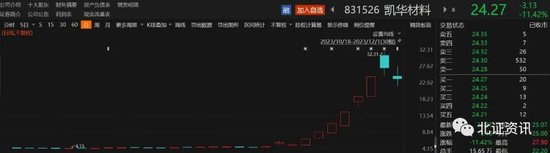 志晟信息今日复牌全天走弱,盘中最大跌幅超27%,全天收跌26.9%,位居今日北交所跌幅榜前列;次新股泰鹏智能、坤博精工等个股跌超15%;凯华材料复牌后盘中一度翻红,全天下跌超11%。