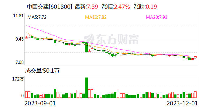 数据显示,截至12月1日收盘,中国交建报7.89元/股,较前一日上涨2.47%,成交3.916亿元,换手率0.43%,总市值1283亿元;祁连山报10.49元/股,较前一日上涨1.55%。