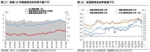 一方面, 美国通胀处在降温通道,但仍然呈现一定韧性,明年能否稳定在2%目标区间存在不确定性,因此尽管加息止步,但预计高利率环境仍将维持一段时间。