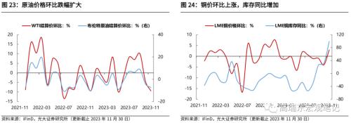 三是,低库存、低供给环境叠加地缘冲突频发,能源价格上行风险较难消除。根据10月IMF《世界经济展望》,预计2024年世界经济增速为2.9%,略低于2023年的3.0%,指向需求侧仍存韧性。考虑到国际原油库存处于低位,且定价权仍由OPEC+掌握,预计明年原油供需仍维持紧平衡,油价高位运行的特征较难改变。