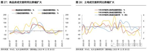 土地成交面积同比跌幅扩大。2023年11月,百城土地供应面积同比增速为-3.08%,成交同比增速为-47.24%;溢价率2.74%,较上月下降0.69个百分点。