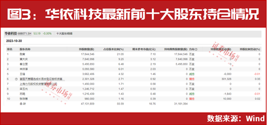 11月7日,智能汽车概念股华依科技发布的《关于回购股份事项前十名股东和前十名无限售条件股东持股情况的公告》也显示,截至10月30日,朱少醒仍继续持有公司股份,且相较三季度的减仓,四季度又重新进行了加仓操作,最新230.13万股的持仓较三季度末增加了30.13万股(见图3)。