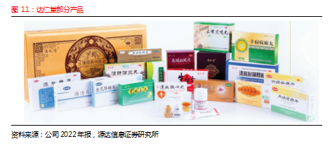 公司主营中成药,产业链覆盖中药材种植、中药材加工、中成药研发、中成药生产、医药物流配送、药品批发和零售。公司产品剂型丰富,包括内科、外科、妇科、儿科等类别,主要产品有安宫牛黄丸、同仁牛黄清心丸、同仁大活络丸、六味地黄丸、金匮肾气丸等。公司产品主要通过零售药店销往终端,医疗市场销售份额总体较小。