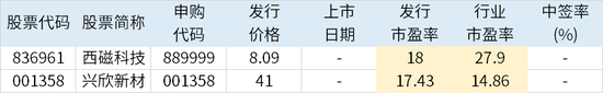 西磁科技主营磁性应用设备及组件的研发、生产、销售,发行PE为17,高于行业PE。