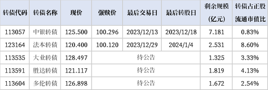 2、 可转债条款触发公告(近一周,具体以公告为准)